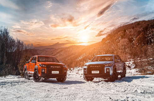 大将军皮卡系列产品采用全新美式越野级大皮卡外观风格设计理念,整车造型尽显王者风范。领先同级别的超大空间,人性化座舱带来堪比豪华轿车的内饰与科技配置。整车尺寸5630*1980*1905mm,轴距3400mm,近2米车宽的王者之躯,尽享超越同级宽体驾乘空间。动力上搭载传承百年康明斯动力基因欧康2.0T发动机,最大功率175 kW,最大扭矩390 N·m。为了匹配其强大动力,传动系统匹配百年采埃孚8AT变速箱,让迅猛动力得以瞬间爆发。同时搭载博格华纳适时四驱系统、伊顿差速锁等高端配置,以强劲操控匹配强大性能,轻松征服全域地形。