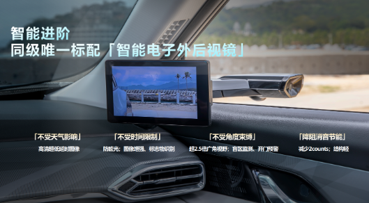 为了给用户更好的价值体验,满足用户多样化个性需求,皓瀚DH-i旗舰版进行了多项功能进阶。其中,同级唯一标配「智能电子外后视镜」,这一创新技术替代了传统光学后视镜,不受天气影响,不受时间限制,不受角度束缚,降阻消音节能,为车辆提供周围环境感知的新一代智能网联汽车核心部件。