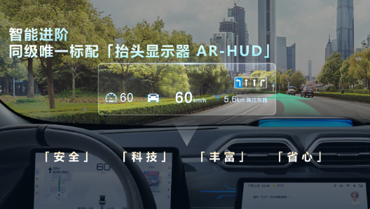 同时,皓瀚DH-i旗舰版配置进阶,同级唯一标配「增强显示抬头显示器 AR-HUD」。在传统W-HUD基础上大幅提升显示区域和显示效果,将驾驶员最关注的导航信息和驾驶辅助信息直接拟合显示在道路上,提高信息传递效率的同时,最大限度的减少驾驶员视线离开道路,加强了驾驶安全性。
