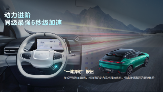 动力进阶也是皓瀚DH-i旗舰版车型的一大亮点。通过OTA升级,可激活同级最强的弹射起步功能,通过弹射起步这项功能,可预先提高发动机转数和扭矩,在松开刹车的瞬间将汹涌澎湃的动力完全释放出来。