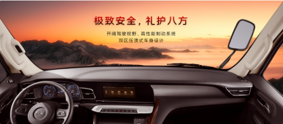 极致安全,礼护八方。秉承国车安全理念,红旗国悦强化所有技术细节,在主动安全和被动安全方面都做到极致,保障出行无忧。主动安全方面,驾驶位上视野20度、下视野22度、A柱障碍角4.4度,打造足够开阔的驾驶视野,配合高性能制动系统和恰到好处的减速效果,让驾驶者从容应对各种突发情况,大大提升安全系数;被动安全方面,创新采用双区压溃式车身设计,赋予车体更强大的抗变形能力,筑起“坚强堡垒”,极致守护一路安全,让驾乘人员开心出行,放心归家。同时,红旗国悦还是同级中唯一满足交通部《客车正面碰撞的乘员保护》法规的车型,整体安全性能大幅领先竞品。