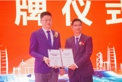 随后东风日产经销商发展部-副部长陈隆先生颁发了:东风日产、东风启辰授权牌,由东风日产金源专营店-总经理张伟锋先生接牌,代表东风日产金源专营店于此刻正式启航。