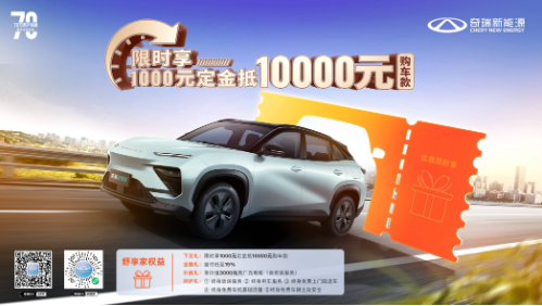 全家出行总动员,奇瑞舒享家限时享1000元定金抵10000元购车款