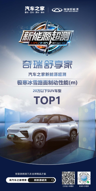 近日,奇瑞舒享家在汽车之家“新能源超测”极寒冰雪路面制动性能、极速性能、极寒雪地加速三项极限测试中,以硬核实力圆满完成挑战,在全球60款热门新能源车型的激烈角逐中脱颖而出,赢得三料冠军的优异成绩,且在加速/制动、能耗、空调升温等多项测试中位列前三。此次测试,让我们共同见证了奇瑞舒享家作为15万级家庭纯电SUV首选所带来的超舒适、超安全“实力天花板”,更好满足家庭的每一次出行所需。