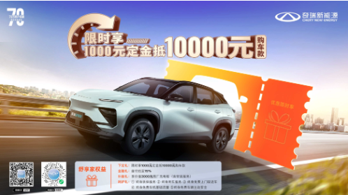 好“礼”知时节,奇瑞舒享家满满诚意相送,轻松让你get全家出游必备“神器”。活动期间,用户购车即可享1000定金抵扣10000元购车款的下定礼,首付低至15%的金融礼,轻松开启全家出游之旅;并赠送价值3000元原厂充电桩+安装的补能礼,随时满电出发;免费赠送2年娱乐流量(6G/月)的流量礼,畅享智趣每一刻;并提供整车终身质保、三电终身质保、终身免费道路救援、终身免费上门取送车、终身免费车机基础流量及终身免费车辆主动安全的呵护礼,全家出行乐享无忧。此外,奇瑞新能源品质保障再升级,全系车型整车+二手车终身质保,保质更保值。