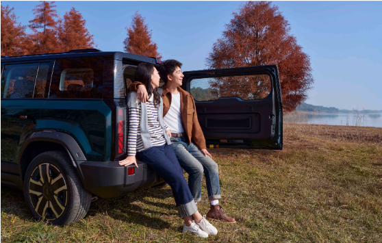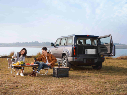 为进一步满足年轻人的越野梦想,iCAR 03还采用了硬派越野的侧开电吸尾门设计,90°直角侧开,拿取物品更加便捷,还能方便人员乘坐;且采用电吸门设计,自动吸合,省心省力,优雅自如。在户外游玩和露营时,iCAR 03侧开电吸尾门不仅可以帮助你轻松拿取露营所需的帐篷和野炊器具,还能在你拿完东西不方便关门时自动吸合,告别手忙脚乱,让每一步都淡定从容。