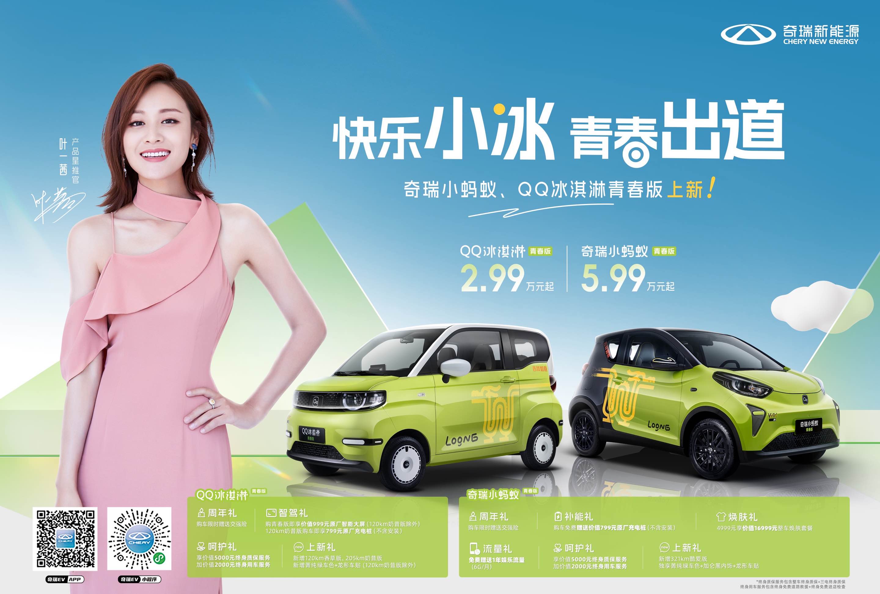 活动收官,礼遇不停,三款实力车型热卖ing,多重惊喜好礼就等你。现购买精品纯电小车奇瑞小蚂蚁青春版,即可享限时赠送交强险的周年礼,免费赠送价值799元原厂充电桩(不含安装)的补能礼,享价值5000元终身质保服务+价值2000元终身用车服务的呵护礼,4999元享价值16999元整车焕肤套餐的焕肤礼,还有免费赠送1年娱乐流量(6G/月)的流量礼,及新增321km酷爱版,独享菁纯绿车色+加仑黑内饰+龙形车贴的上新礼,即刻开启“菁”彩出行生活新体验。