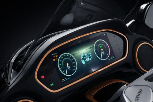 长城灵魂旅行车不仅拥有强大的动力,更在智能科技方面开创了摩托车智控时代。它配备了行业最大尺寸的12.3英寸LCD可触控液晶仪表和车规级8155芯片,支持OTA远程升级,让整车科技体验再度进阶,并赋予了车辆未来可成长、可优化的空间,让驾驶者“常骑常新”。