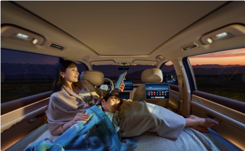 问界新M7 Ultra的车身尺寸为5020×1945×1760mm,拥有同级最大的3338mm轴距,不仅外观魁梧,车内空间也做到了极致。前排座椅靠背可向后放倒69°,纵深最长可达3米,而且还可根据需要灵活变换成单人床或双人床模式,带来如家的舒适。全新升级的舒云座椅,座感更柔软,支撑性和贴合度也更加出色,更好降低疲劳感。