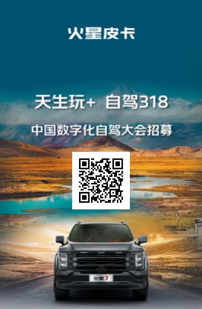 这不仅是一场自驾之旅,更是一次心灵的洗礼,一次对自我的超越。火星皮卡,愿与您一同,在G318这条世界上最美的公路上,留下属于英雄的足迹。让我们以车为舟,以梦为帆,共同驶向那片遥远而神秘的高原,开启一场关于勇气、坚持与热爱的传奇篇章。火星征途,英雄已集结,您,准备好了吗?