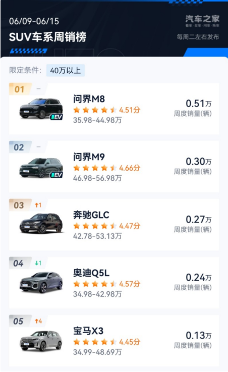 “家庭智慧旗舰SUV”问界M8自上市以来,销量数据直线飙升,汽车之家最新周销量数据显示,6月9日-15日,问界M8以0.51万辆的成绩,成功占据40万级以上SUV销量榜首。这款被誉为“全能车王”的全新车型,还成功发动“空间超能力”,一车搞定三代人需求,成为一家人的最爱。