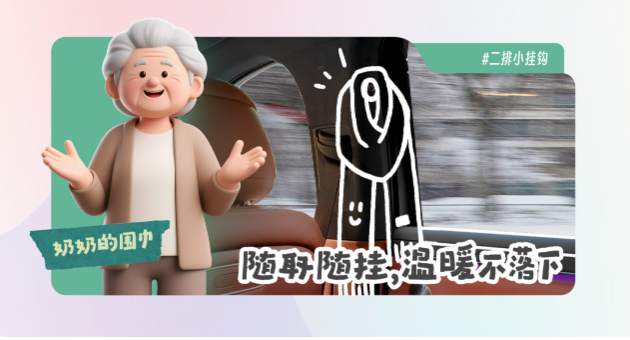 二排体贴地设计了小挂钩,让二排乘客的围巾、帽子等随身衣物妥善安置,下车时随手取用,避免遗落车内。