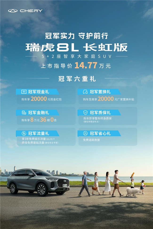 在15万级家用SUV市场,“有所偏重”几乎是常态:有的只在空间上做文章,动力却乏善可陈;有的在配置层面精简到只够日常。瑞虎8L长虹版则以冠军赛场淬炼的技术实力,全面赋能家庭出行,不论动力、配置还是安全都不留短板,用一份从容和底气,诠释真正守护全家的高价值SUV。