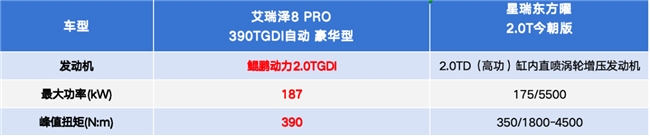 艾瑞泽8 PRO搭载的鲲鹏动力2.0TGDI发动机拥有187kW的最大功率和390N·m峰值扭矩,而同为2.0T动力的星瑞东方曜·今朝版最大功率为175kW,峰值扭矩350N·m,相比之下,艾瑞泽8 PRO在实际驾驶中能提供更充沛的动力,起步更迅猛,轻松领跑车流。城市快速路或高速上需要超车时,深踩油门能带来更强烈的推背感和持续有力的加速,让并线超车动作更果断、更安全。哪怕面对陡峭坡道,它也能凭借充沛的低扭输出,保持从容不迫的爬坡姿态。