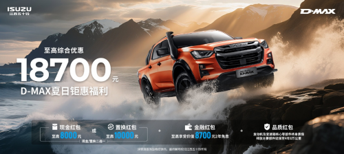 D-MAX强悍来袭:至高综合优惠 18,700元!高端越野王者,清凉福利同样硬核。